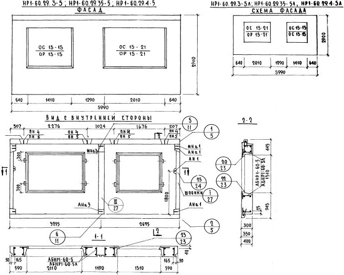 НР1-60.29.35-5л Наружная стеновая панель рядовая по Серии 1.132-1.