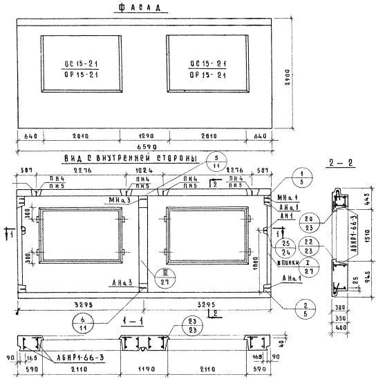 НР1-66.29.4-3 Наружная стеновая панель рядовая по Серии 1.132-1.